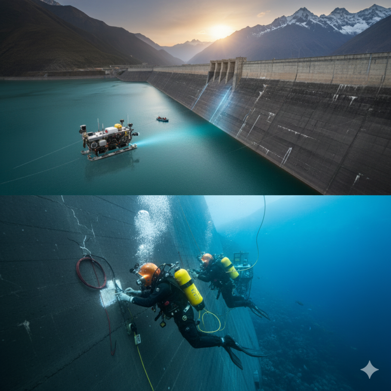En 2023, ejecutamos la inspección de una represa en la sierra peruana, identificando filtraciones críticas con robots ROV y realizando reparaciones con buzos saturación, evitando un colapso estructural.