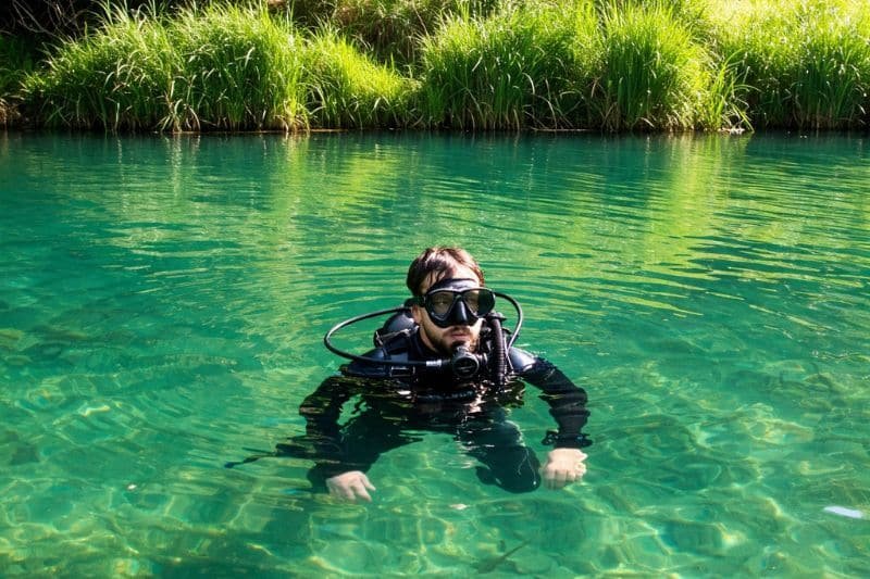 3. Temperaturas del agua: Las aguas dulces, especialmente en ríos de gran altitud o lagos de clima frío, pueden tener temperaturas más extremas. Los buzos deben estar equipados con trajes de neopreno adecuados para mantenerse protegidos y cómodos en todo momento.